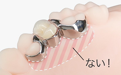 金属バネを使用せず、歯ぐきの色に近い樹脂を使用した部分入れ歯です。見た目が自然なだけでなく、樹脂の柔らかさによりフィット感も得やすいです。